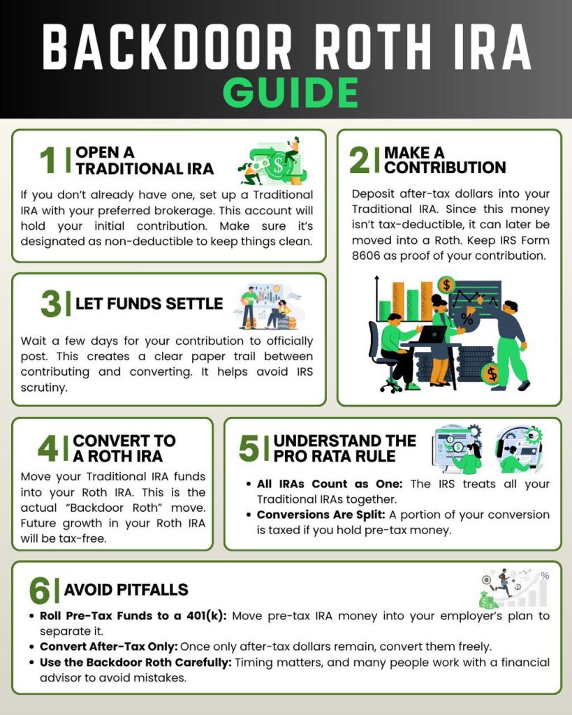 High-income earners who exceed Roth IRA contribution thresholds can still fund Roth accounts using a two-step process: