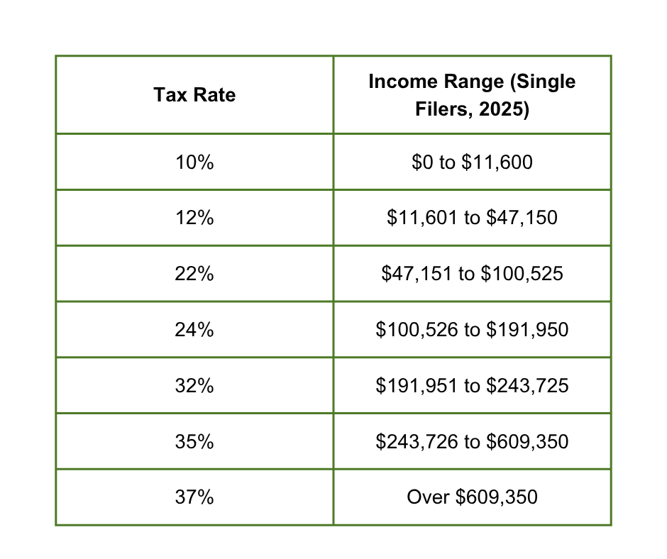 The U.S. tax system is progressive, meaning your income is taxed in layers. Each layer corresponds to a specific tax rate. As your income increases, only the portion that falls into the next bracket is taxed at the higher rate—not your entire income.